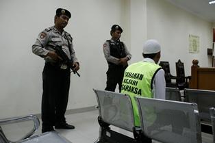 Di tempat yang sama, penjagaan ketika persidangan pun terlihat diperketat dari hari sebelumnya. Dalam satu ruang sidang, terlihat ada dua petugas kepolisian yang dilengkapi dengan senjata laras panjang terlihat bersiaga.