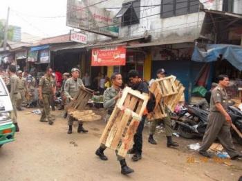 Pantauan di lapangan, sejak pukul 07.00 WIB, ratusan petugas gabungan dari Satpol PP, TNI dan kepolisian sudah bersiaga di eks pasar tradisional milik Pemkab Tangerang itu. Satu persatu, PKL mulai dari pinggir rel KA stasiun Serpong hingga depan Puskesmas kecamatan setempat habis dibongkar. Para pedagang hanya pasrah mengemasi barang dagangannya dibantu para petugas penertiban. Setelah mengemasi barangnya, banyak para pedagang yang langsung pulang kerumahnya. Penertiban hingga pukul 11.00 WIB itu tanpa ada perlawanan dari PKL.