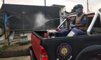"Hari ini kita lakukan penyemprotan tiga titik di dua kecamatan, yaitu wilayah Kecamatan Kelapa Dua dan wilayah Kecamatan Panongan. Semua karena ada warganya yang terpapar virus COVID-19," ujar Kosrudin.