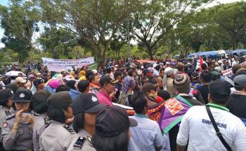Aksi yang berjalan tertib ini dijaga ratusan aparat kepolisian dari Polresta Tangerang dibantu TNI dan Satpol PP Kabupaten Tangerang, dengan membentangkan spanduk berisi penolakan perluasan bandara, warga berharap agar anggota DPRD Kabupaten Tangerang bisa menjembatani aspirasi warga.