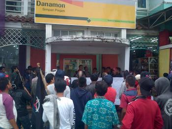 Jika tuntutan tidak dikabulkan, massa mengancam akan melakukan penggembokan kantor bank Danamon.