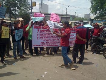 "kami menuntut agar pengusaha segera memberlakukan undang-undang ketenagakerjaan," ujar Judin dalam orasinya.