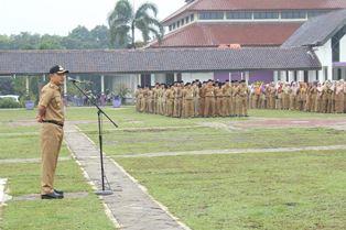 TIGARAKSA - Wakil Bupati Tangerang H. Mad Romli memimpin apel minggu kedua di awal tahun 2019, Senin (14/01/2019). Wabup menghimbau kepada seluruh Aparatur Sipil Negara (ASN) di Kabupaten Tangerang untuk meningkatkan pelayanan kepada masyarakat.