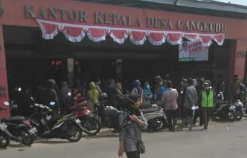 Pantauan di lokasi, warga yang megantri sejak pagi itu terlihat berdesak-desakan saat masuk ke Aula Kantor Desa cangkudu. Puluhan petugas yang berjaga terlihat kewalahan mengatasi antrean warga yang ingin mendapatkan BST sebesar Rp600 ribu.
