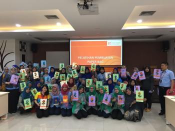 SERPONG UTARA-sebanyak 100 warga di tiga kelurahan mengikuti pelatihan paper bag. Kegiatan ini difasilitasi PT Indah Kiat Pulp and Paper (IKPP) Tangerang dalam pemberdayaan masyarakat lingkungan perusahaan. Kegiatan yang digelar di Aula perusahaan yang memproduksi kertas tersebut didominasi ibu-ibu.