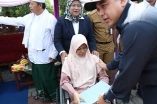 Bantuan Diserahkan langsung oleh Bupati Tangerang Ahmed Zaki Iskandar yang diterima oleh keluarga korban di halaman kantor Kecamatan Pasar kemis Kabupaten Tangerang, Selasa (16/4/2019).