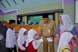 Pada kesempatan tersebut Bupati Tangerang A. Zaki Iskandar ditemani istri tercinta Yuli Zaki Iskandar memberikan santunan dan bingkisan kepada 150 anak yatim piatu. (day)
