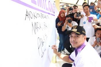 TIGARAKSA - Bupati Tangerang Ahmed Zaki Iskandar benar-benar komitmen dalam pemberantasan penyalahgunaan narkoba di Kabupaten Tangerang. Hal tersebut terbukti saat bupati membubuhkan tandatangan aksi menolak narkoba saat acara senam sehat anti narkoba bagi pelajar, pemuda, dan mahasiswa dalam rangka peringatan hari anti narkoba internasional, Rabu, (27/7/2016).