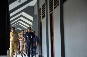 PANONGAN - Bupati Tangerang Ahmed Zaki Iskandar meninjau pelaksanaan Ujian Nasional Berbasis Komputer (UNBK) di SMKN 1 Panongan, Selasa (5/4/2014). Bupati datang didampingi Kepala Dinas Pendidikan Teteng Jumara dan Kabid SMA/K Wahyudi Budi Saksono.