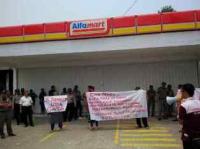Pedagang Kecil dan Warga Geruduk Alfamart Saga